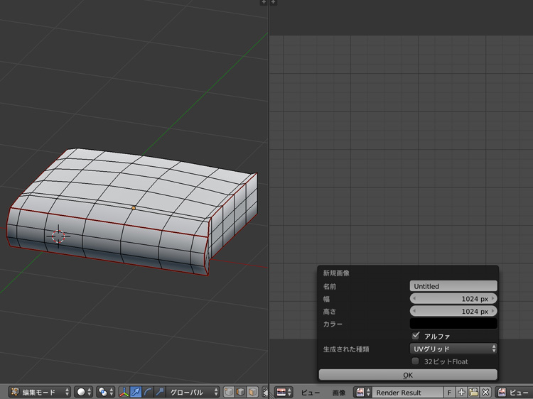 「+」で新規画像を作成し、生成された種類をUVグリッドにしてOKをクリックします。この画像は、後からテクスチャ画像と差し替えます。