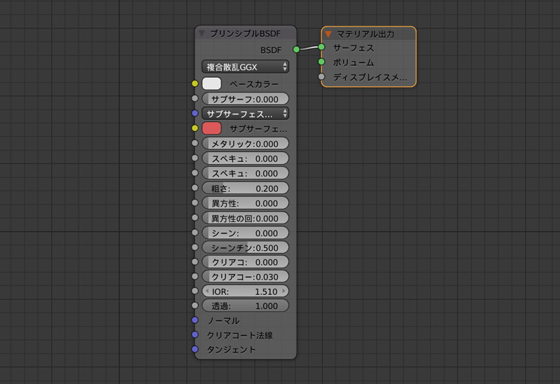 基本的なマテリアルの設定方法は、「Blenderでマテリアルを設定」を参考にしてください。レンダリングエンジンは、Cyclesレンダーを使用します。