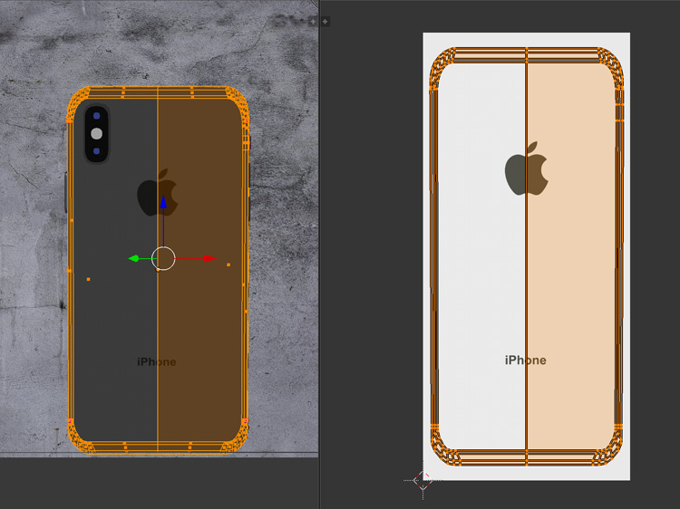 ディスプレイと同じように、iPhoneXS本体の背面もUV展開して、テクスチャを設定します。
