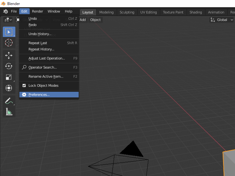 トップバーの「Edit」の「Preferences」でユーザー設定画面を開きます。