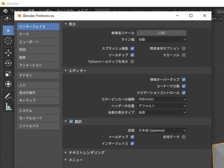 ※設定ファイルは「C:\Users\(ユーザー名)\AppData\Roaming\Blender Foundation\Blender」に保存されます。