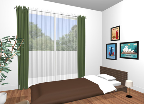また、ベッドや床など修正が必要なオブジェクトのマテリアルとテクスチャを修正し、窓ガラスとレースのカーテンの透過設定をしました。glTF2.0の仕様を考慮したマテリアルの設定方法は、「glTF2.0のマテリアルについて」を参照ください。