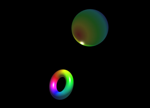 Three.jsでポイントライトを使用する場合はPointLightを設置するだけですが、WebGLの場合はシェーダでライティングの計算をする必要があります。また、ポイントライトをテストするため、トーラスと球体を生成します。