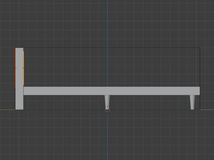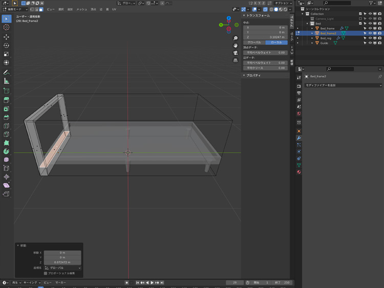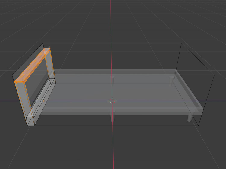 サイドフレームを編集モードにし、奥の面を選択してベッドボードと重ならないように「G」+「Y」で移動します。