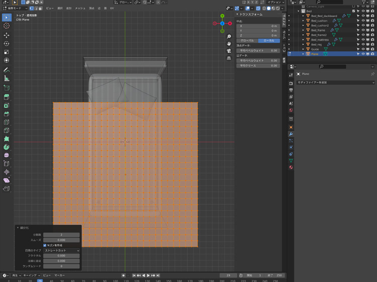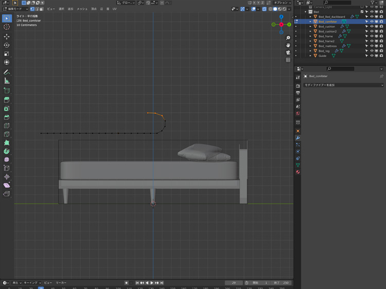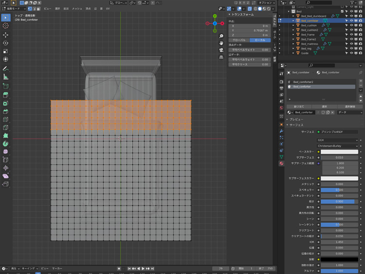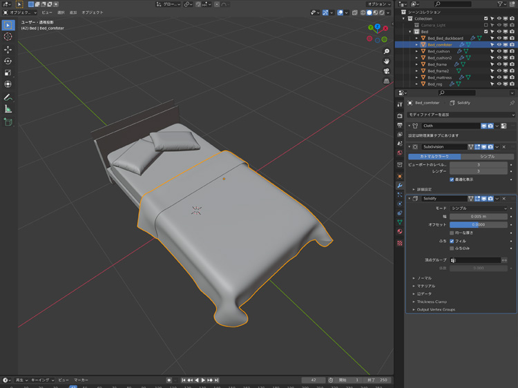 枕の制作方法は「Blender2.9でクッションを制作」を参考にしてください。