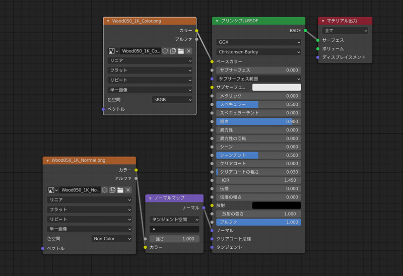マテリアルの設定方法は「Blender2.8でマテリアルを設定」を参考にしてください。