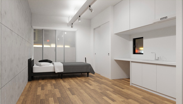 完成したベッドを「CGWORLDのチュートリアルで部屋モデリング(1)」で制作したリビングに設置しました。