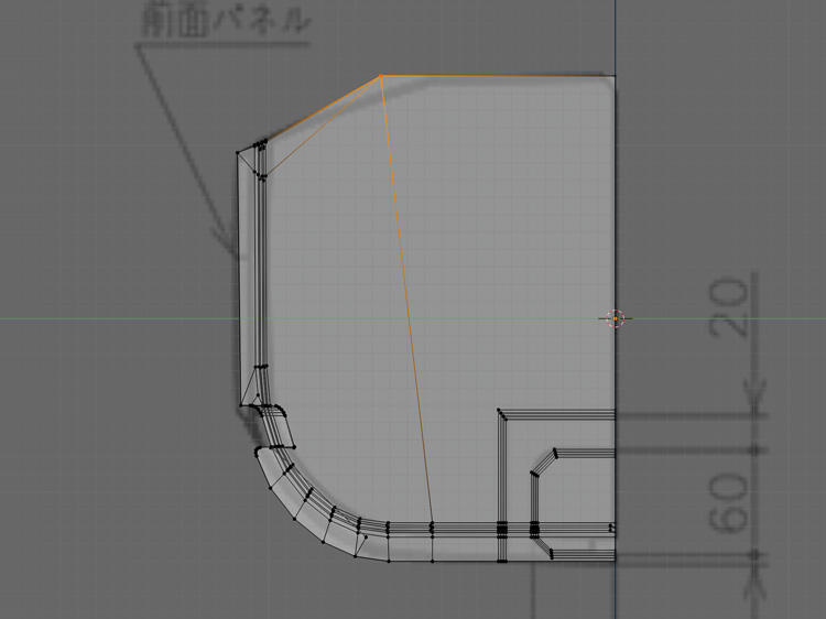 フラップの上の部分の窪みを選択し、「E」+「Y」で押し出します。