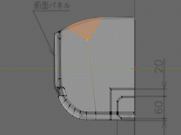 二面図に沿って「K」+「C」で辺を追加します。