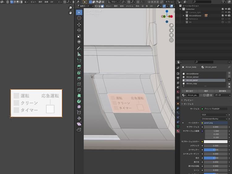 エアコンのセンサー部分のマテリアルとテクスチャを設定します。