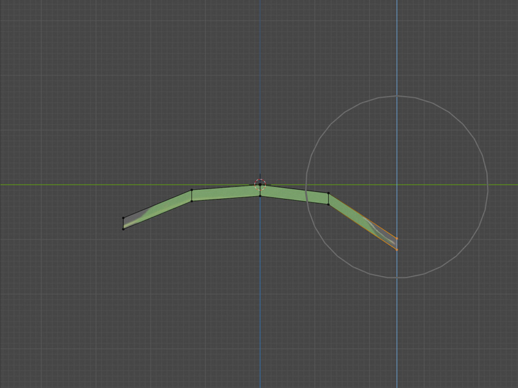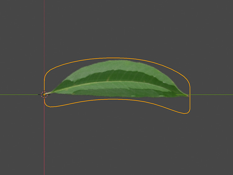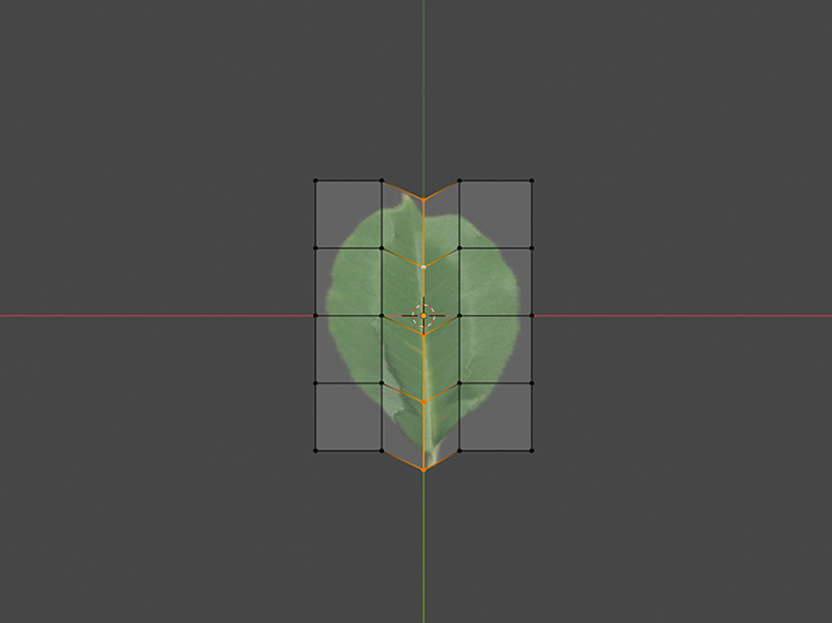 葉の中央の辺を選択して、「G」+「Z」で少し下げます。