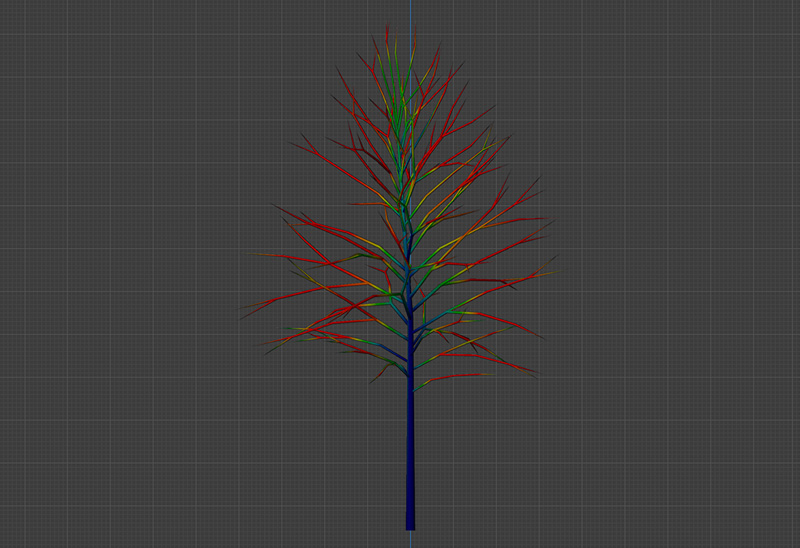 幹のテクスチャを設定します。今回はノイズテクスチャを使用して設定しました。最後に、葉の色や枝などを調整して、オリーブの木は完成です。