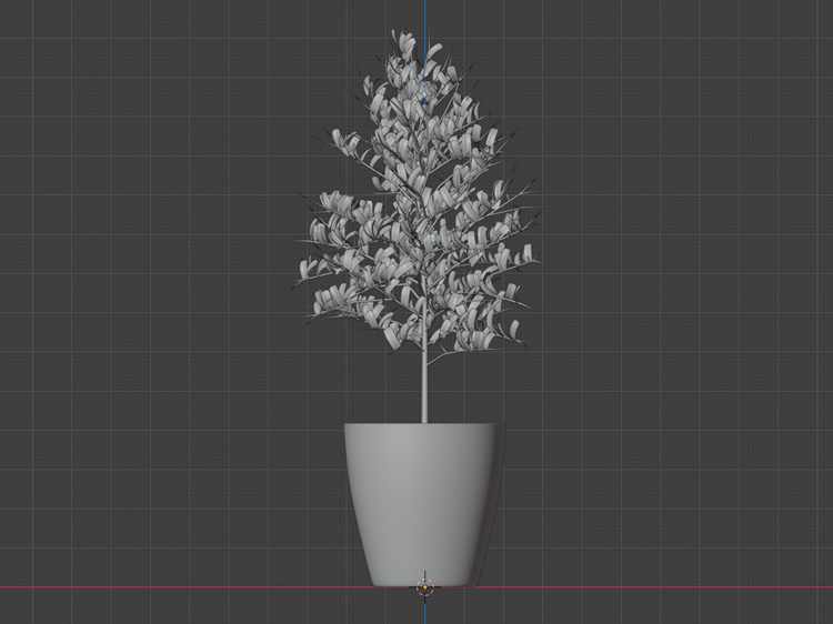 「Blender2.9で観葉植物のオリーブの木を制作(1)」で鉢や幹をモデリングしましたが、引き続き観葉植物のオリーブの木を制作します。