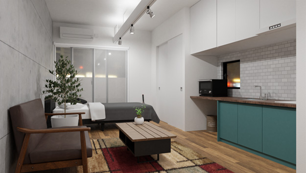 完成した観葉植物を、「CGWORLDのチュートリアルで部屋モデリング(1)」で制作したリビングに置きました。
