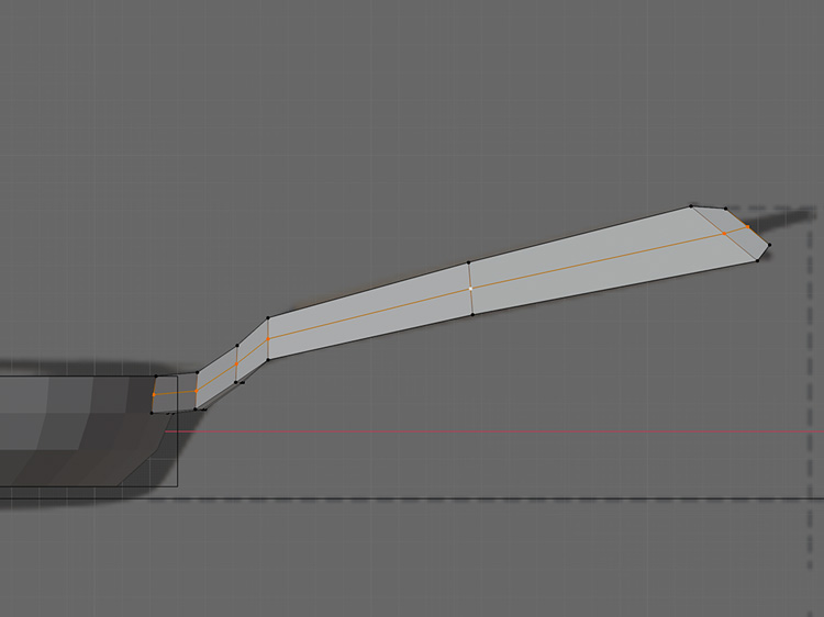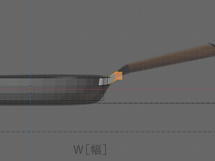 押し出しと拡大縮小、頂点の位置の調整を繰り返して、取っ手をモデリングします。