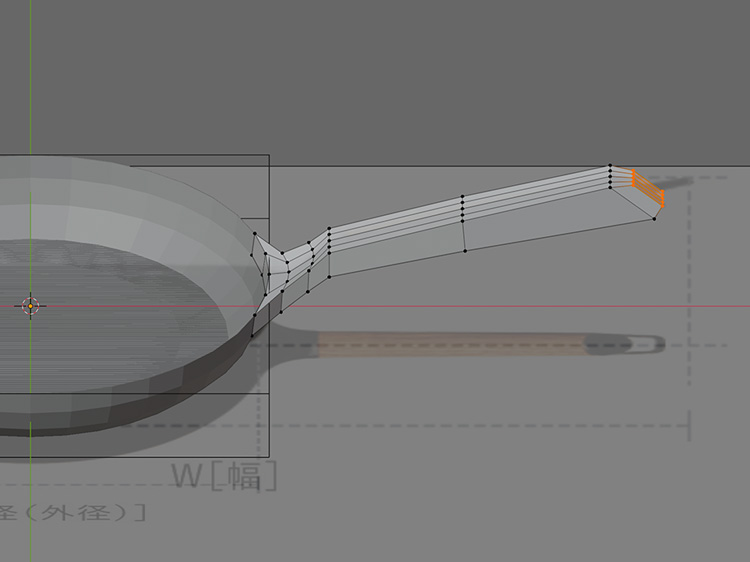 これで、フライパンのモデリングの完了です。