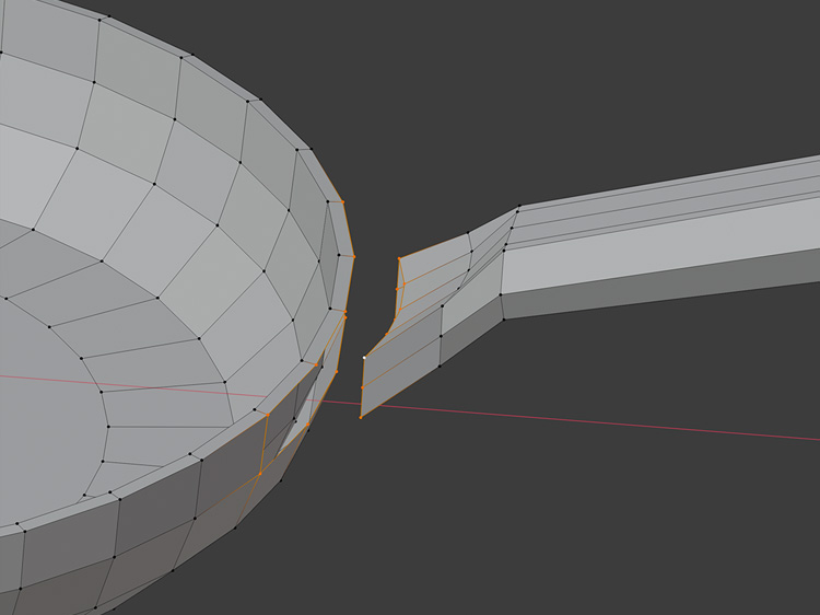 フライパンと取っ手を辺ループのブリッジで結合します。