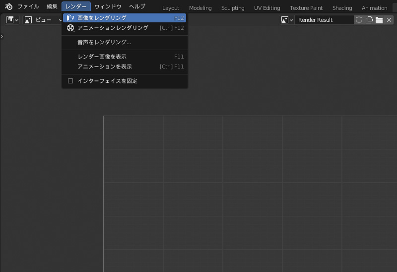 「F12」か、トップバーの「レンダー」の「画像をレンダリング」をクリックすると、新規ウィンドウが立ち上がってレンダリングが始まります。
