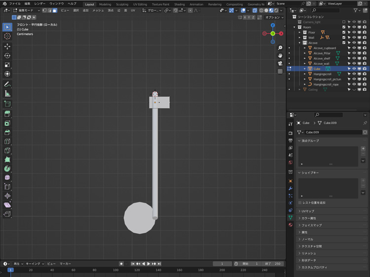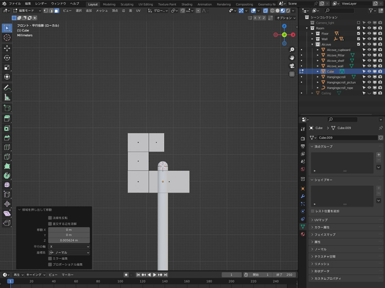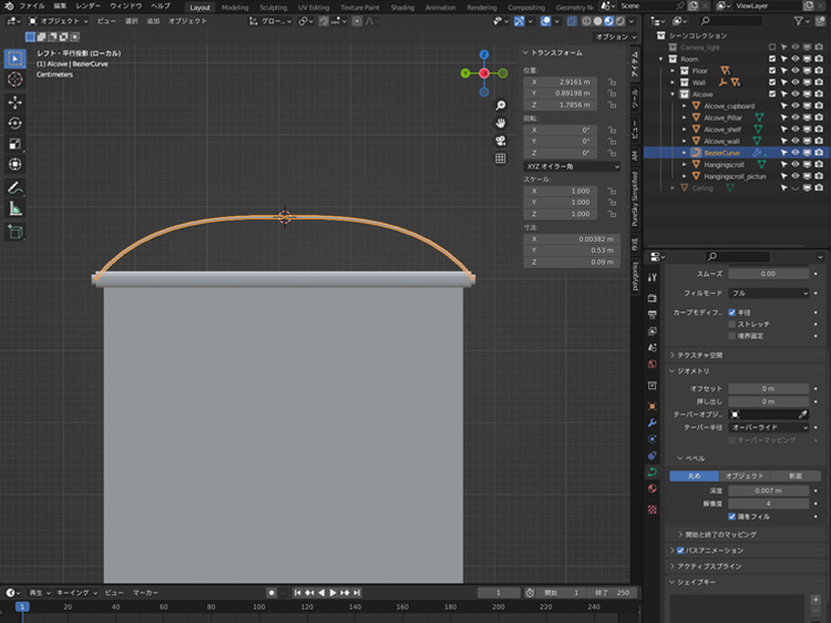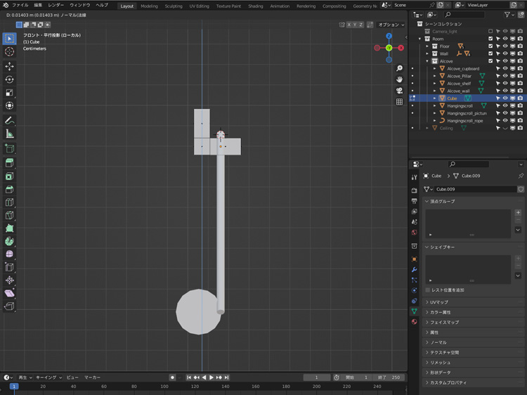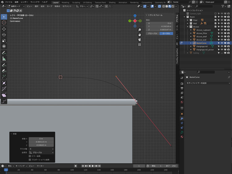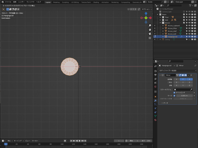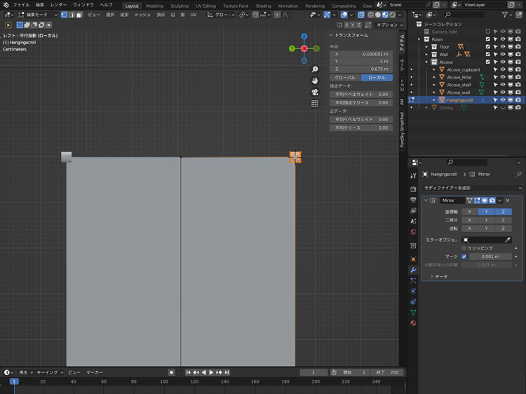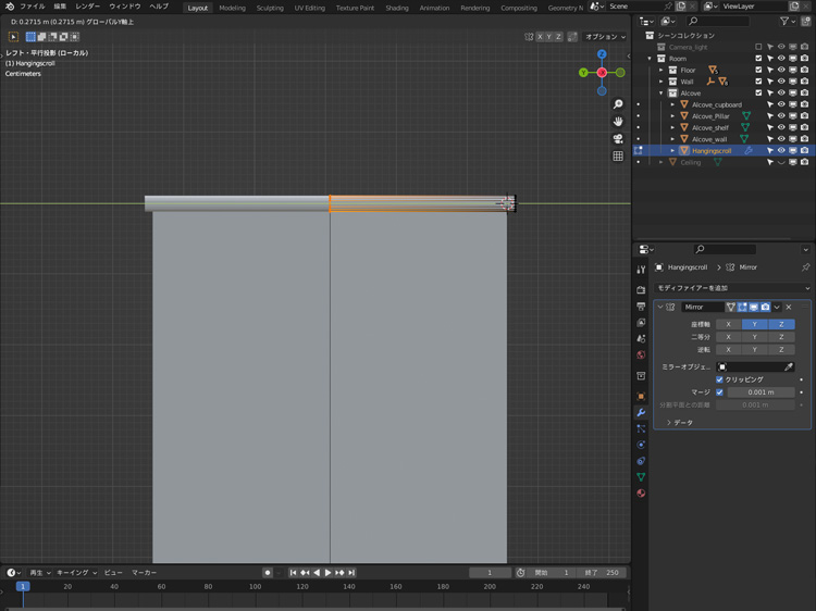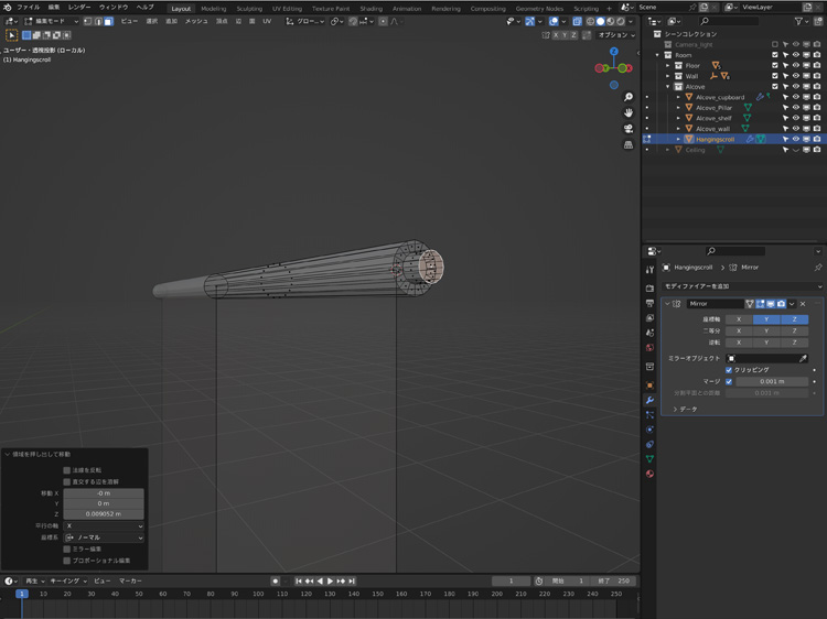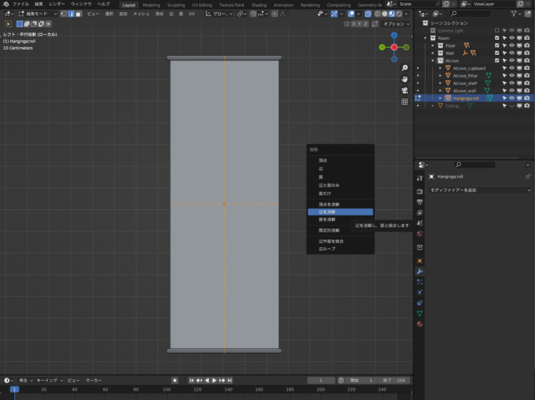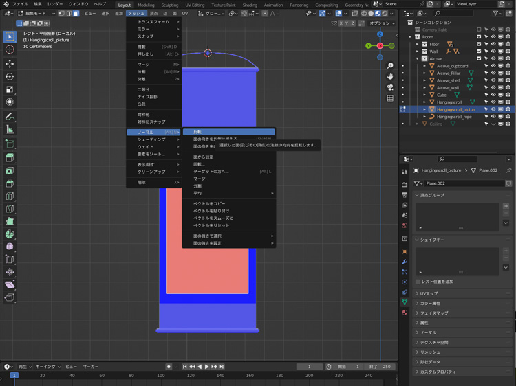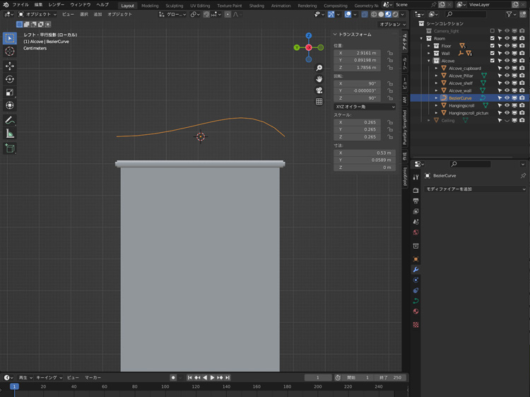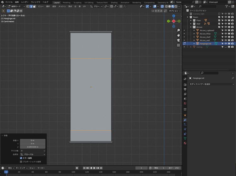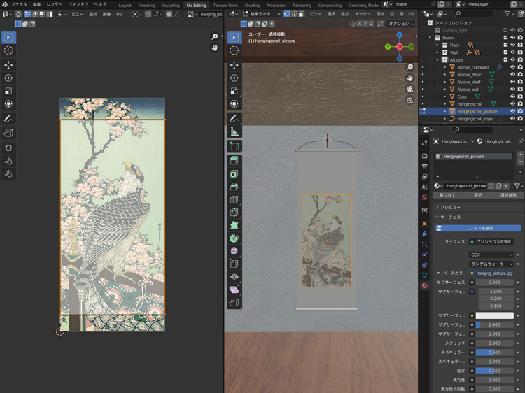 「Blender3.3で床の間を制作」に続き、床の間に飾る掛け軸を制作しました。