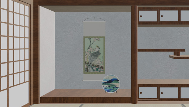 掛け軸の絵画は、パブリックドメインQからダウンロードしました。