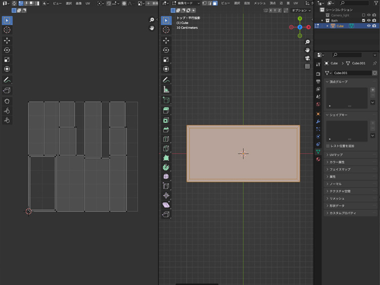 立方体をUV展開します。