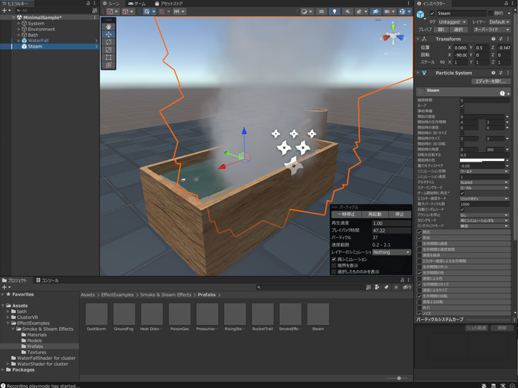 「Smoke & Steam Effects」は「Assets > EffectExamples > Smoke & Steam Effects」にインポートされます。