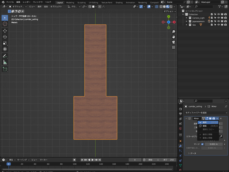テクスチャをベイクするには、モディファイアーを適用する必要があります。モディファイアーは適用すると元に戻せないため、後で修正できるようにモディファイアーの設定を残したファイルを残しておきます。