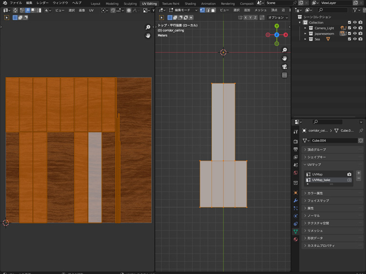UV Editingのタブに切り替え、追加したUVマップを選択してアクティブにします。