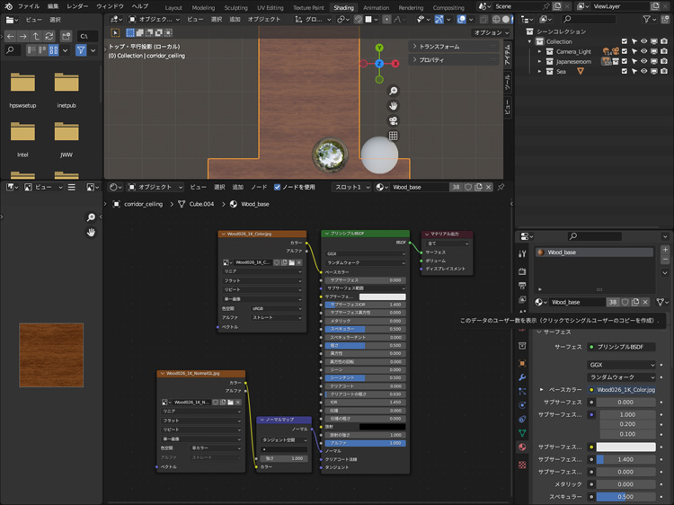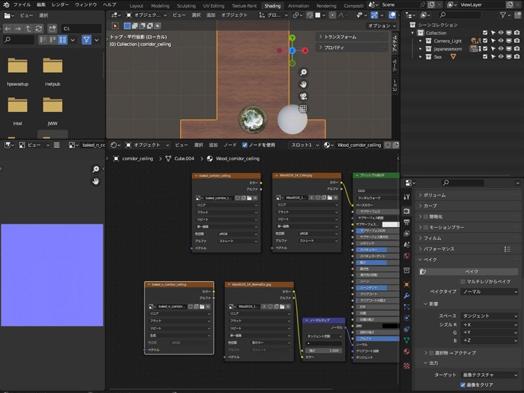 ベイクしたテクスチャとノーマルマップをプリンシプルBSDFに接続します。