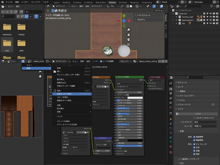 ベイクが完了したら、「画像 > 名前をつけて保存」で任意のフォルダに画像ファイルを保存します。