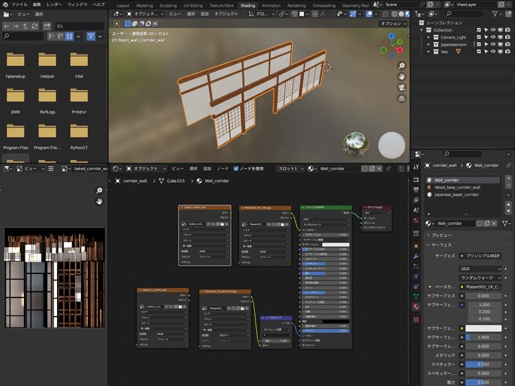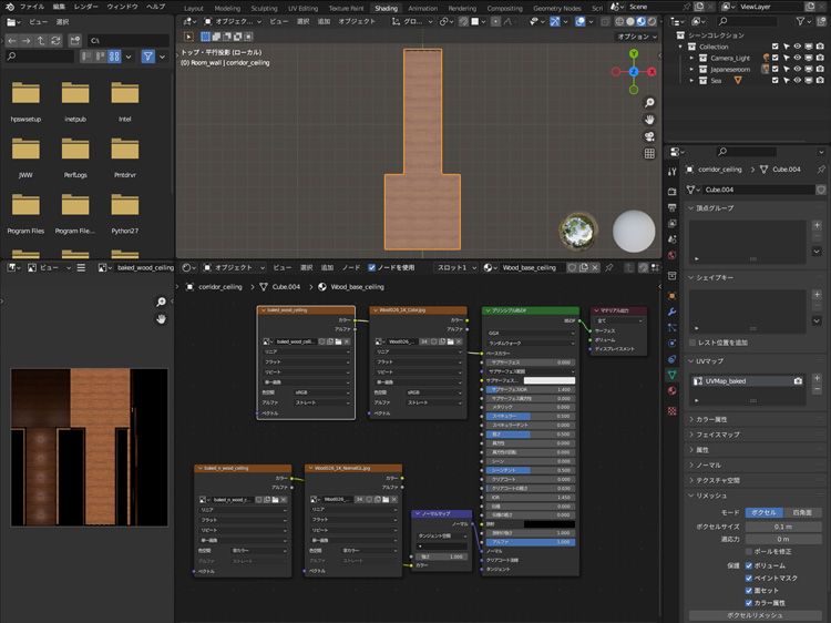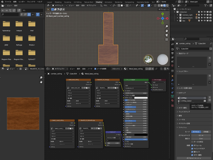 必要な全てのオブジェクトのテクスチャとノーマルマップをベイクして、テクスチャのベイク作業は完了です。