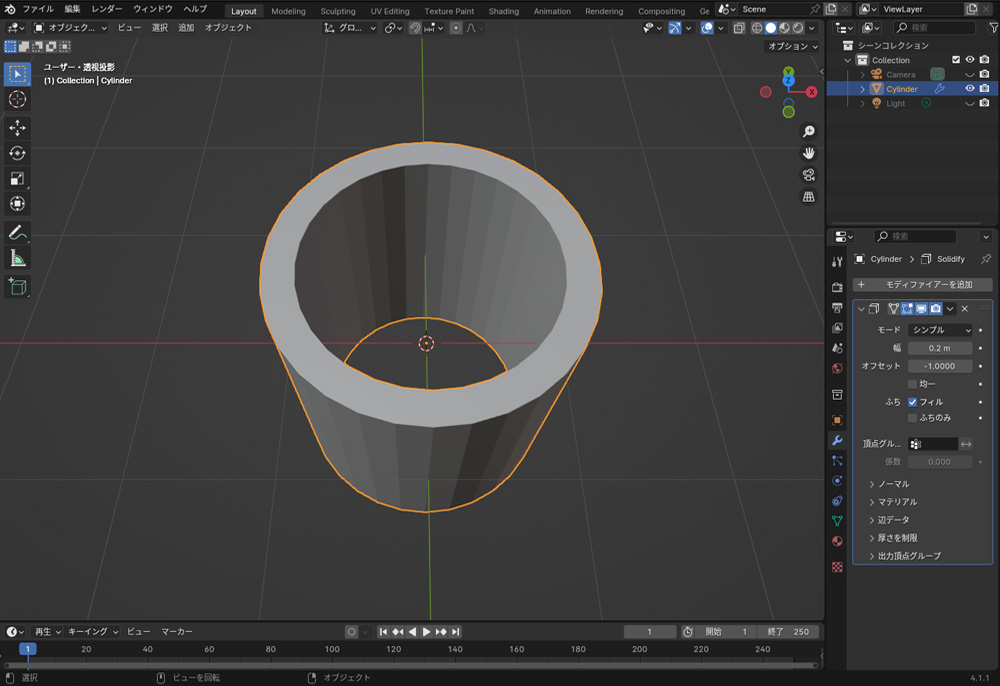 ソリッド化は、オブジェクトに厚みをつけるモディファイアーです。